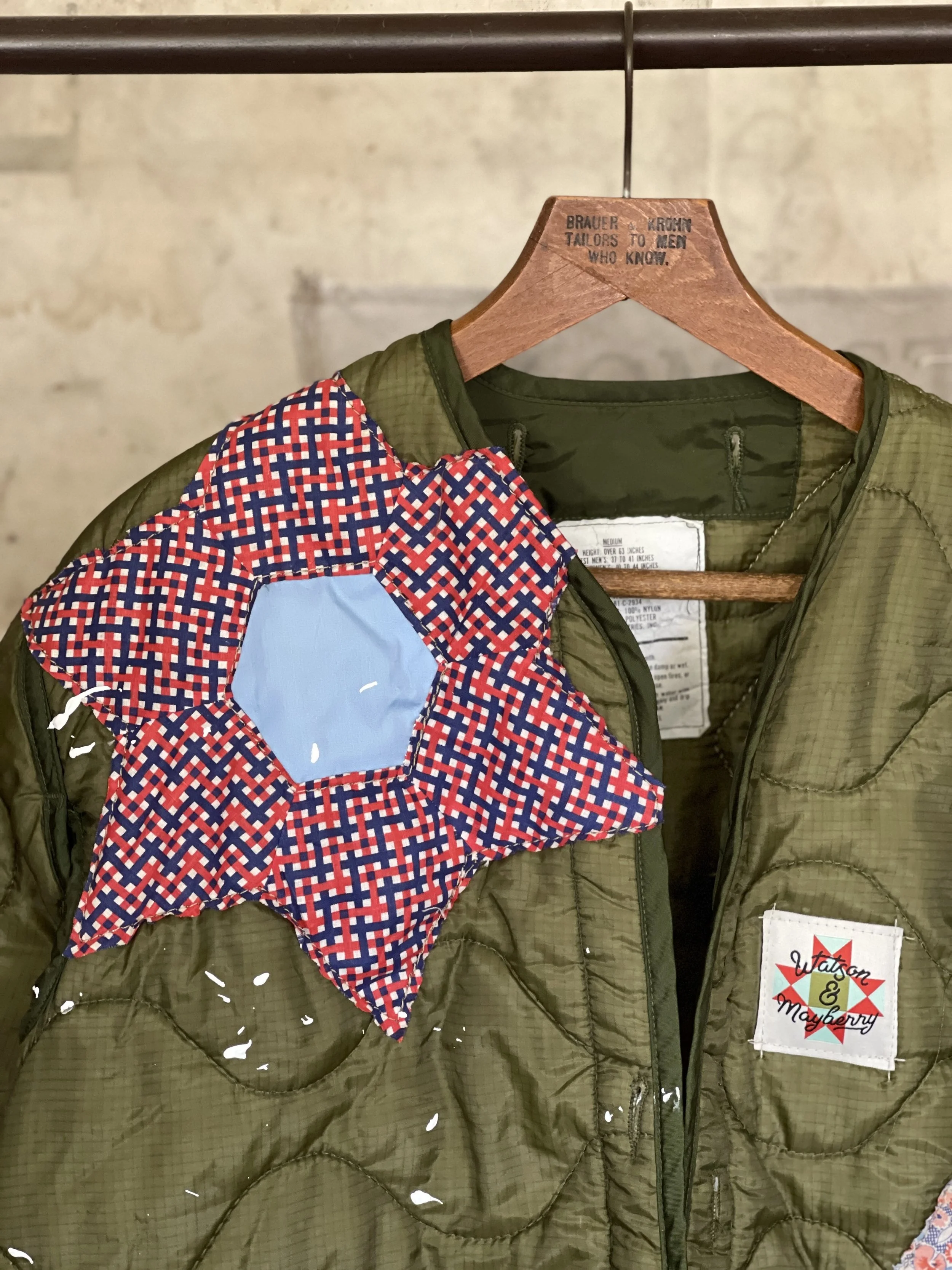 For your consideration, a rad surplus jacket liner that we’ve refreshed into your new fav piece to wrap up in!